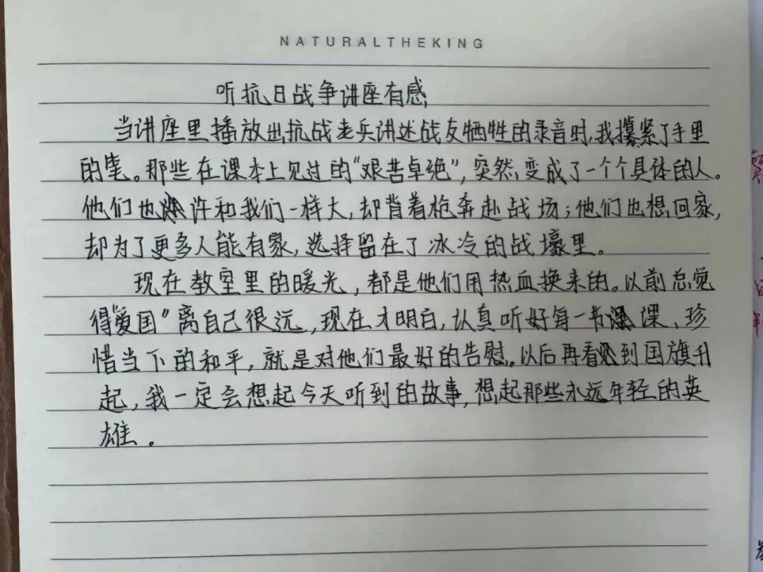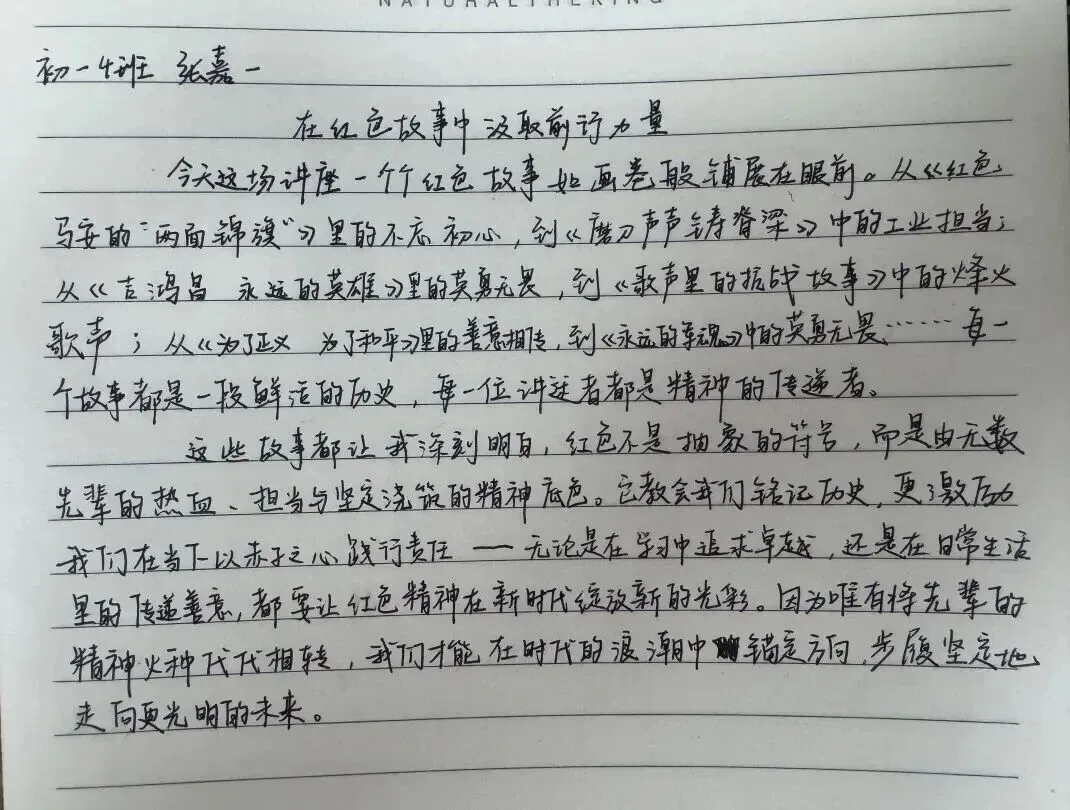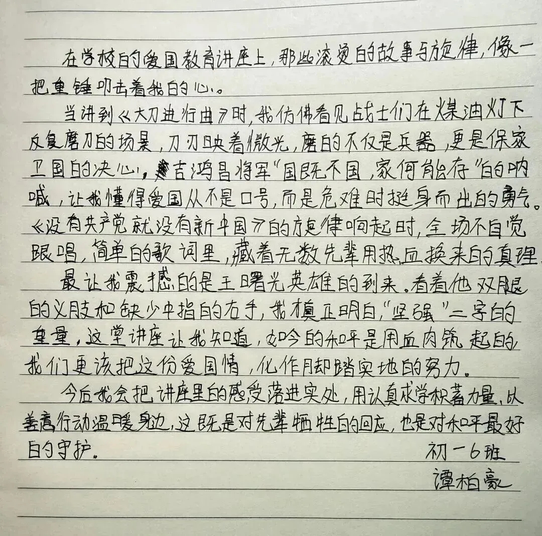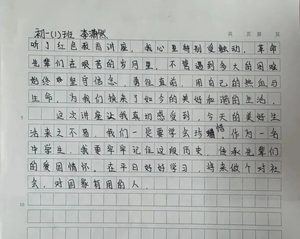 这堂讲座不仅是历史的回溯,更是精神的传承,让孩子们明白今日的安稳是无数先辈以热血铸就。作为班主任,我坚信这样的红色滋养,会让他们更懂责任与担当,在未来以实际行动传承这份家国情怀,成长为有温度、有力量的新时代少年。