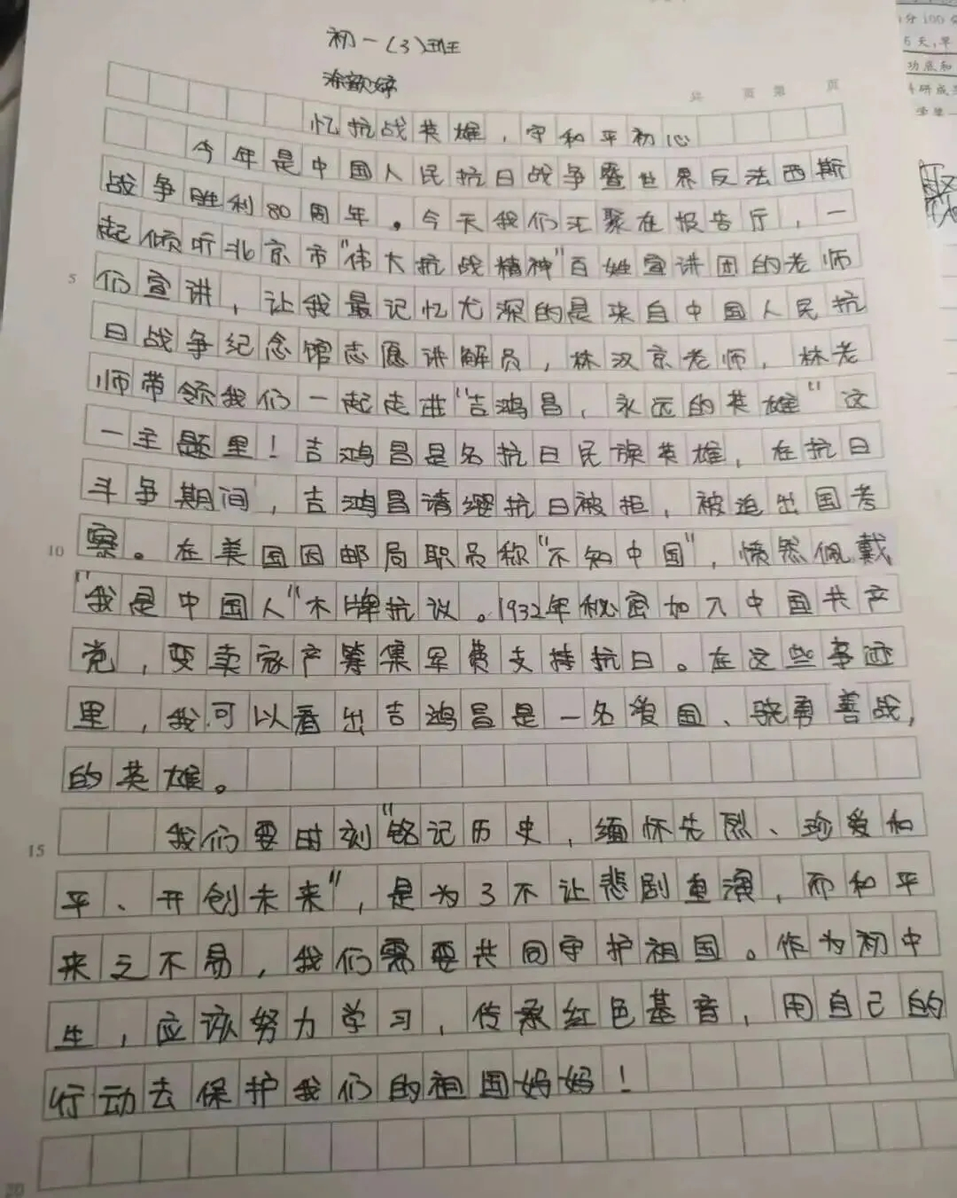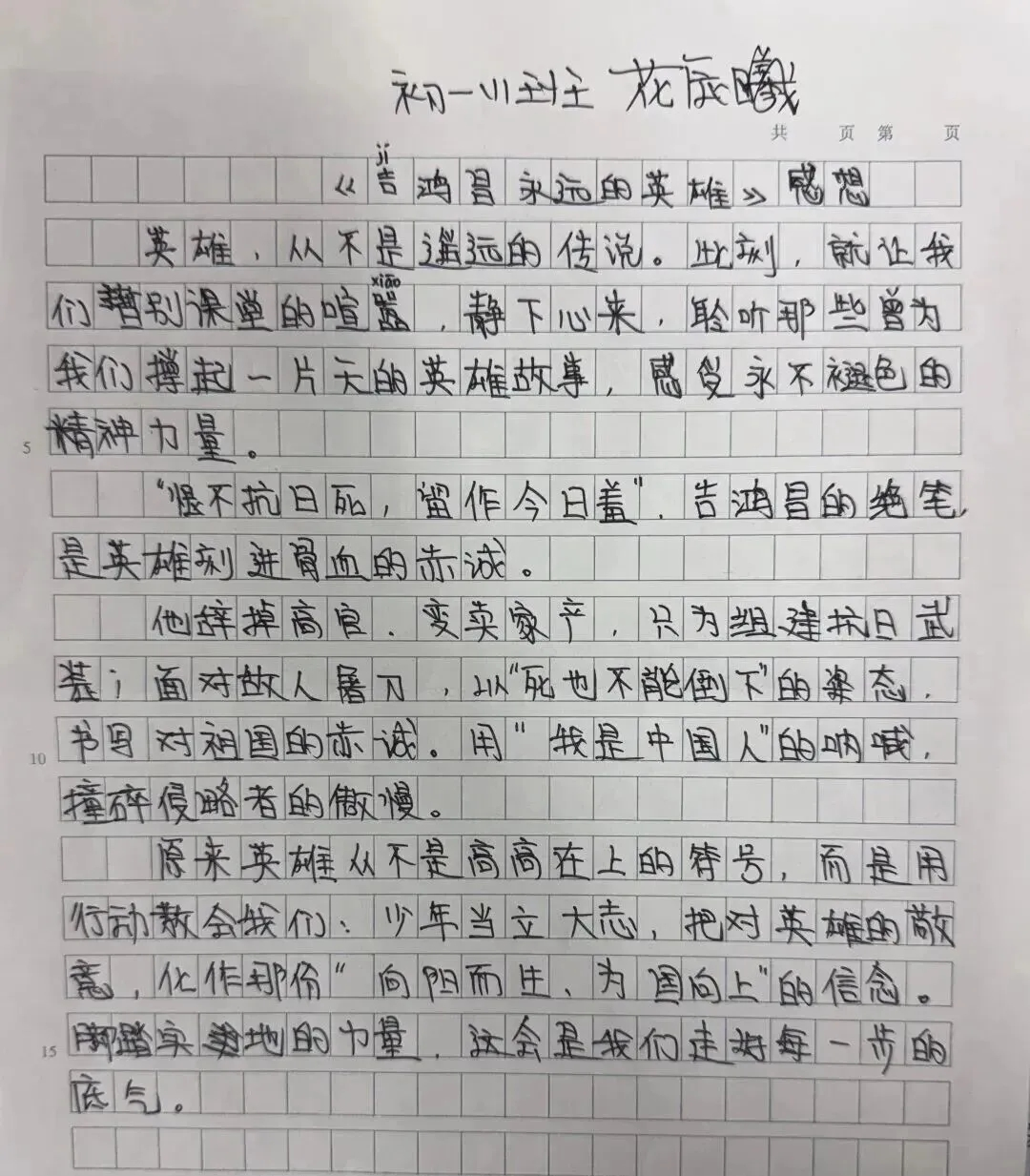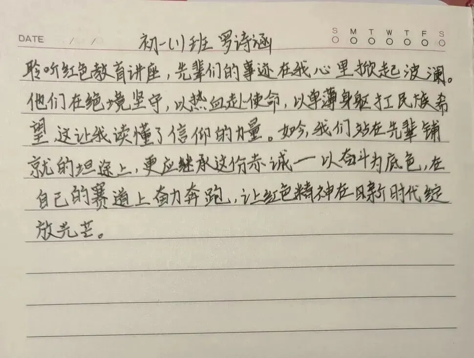 这堂讲座不仅是历史的回溯,更是精神的传承,让孩子们明白今日的安稳是无数先辈以热血铸就。作为班主任,我坚信这样的红色滋养,会让他们更懂责任与担当,在未来以实际行动传承这份家国情怀,成长为有温度、有力量的新时代少年。